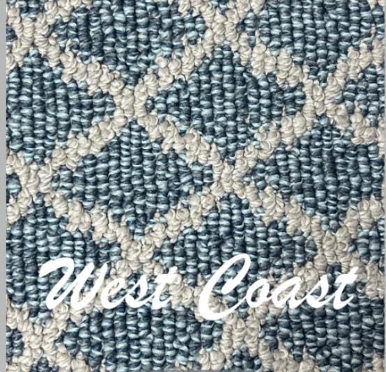 We start with this awesome carpet, cut it down to the correct tread size, seam the borders, permanently attach our True Bullnose® rigid edge, and then add padding then nonskid to the back.