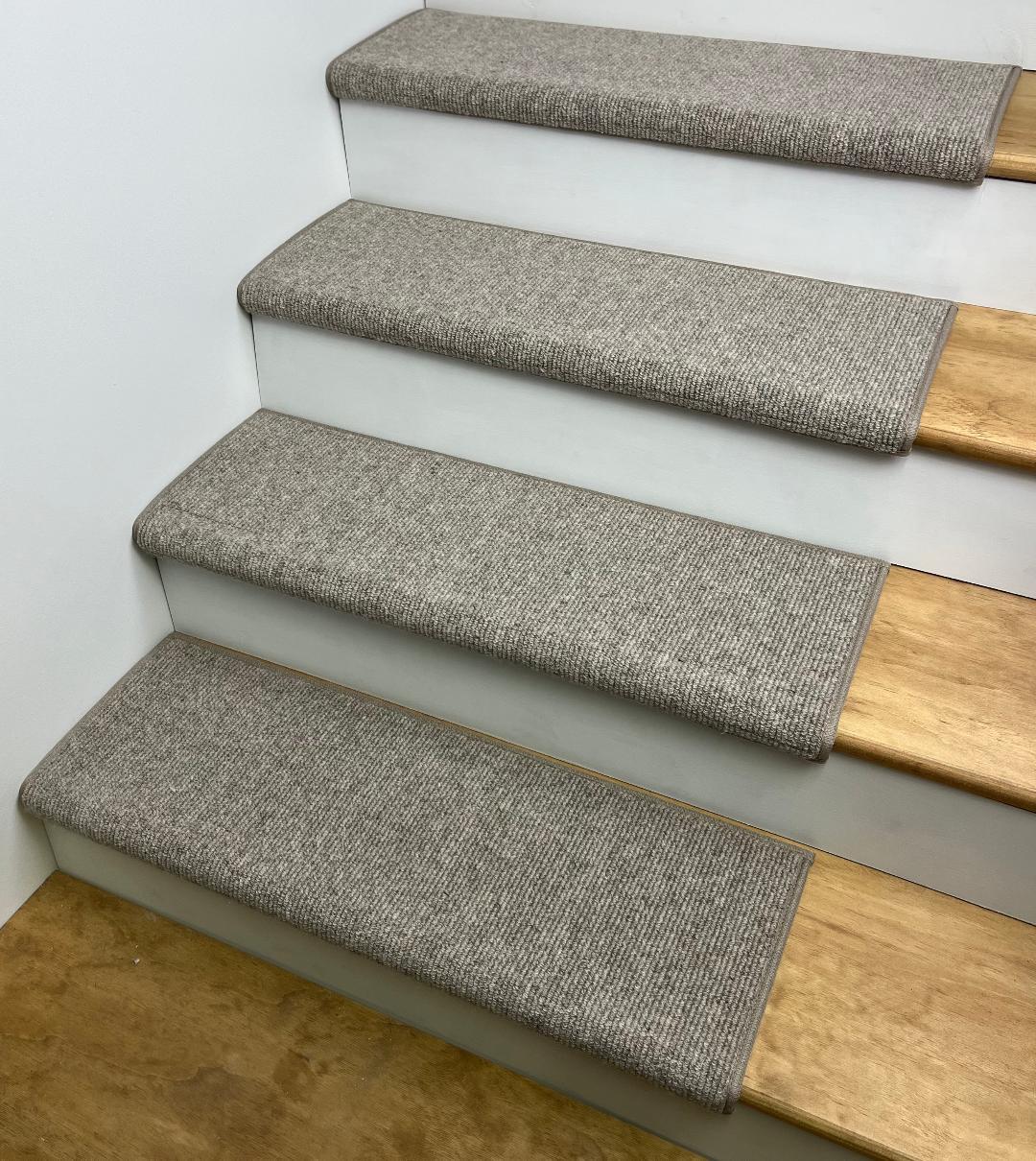 Part of our premium wool collection of stair treads! An elegant but affordable alternative to a complete professional runner installation. The style is 100% Wool, not the cheaper olefin/polypropylene-type yarns.