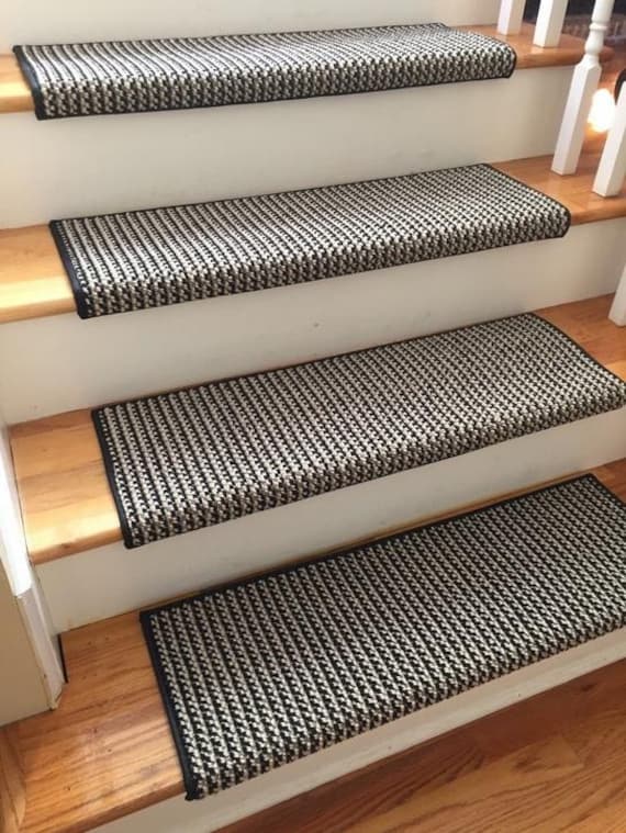 Black Tie Black Jack (Plus one other color) 100% New Zealand True Bullnose® Wool Padded Stair Treads (Sold Each)